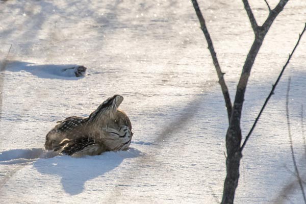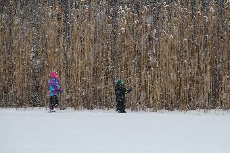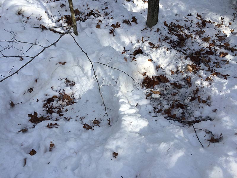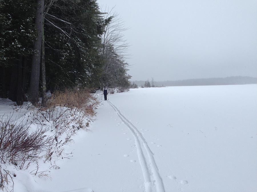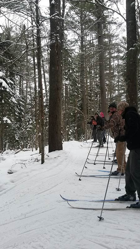 Jan. 24, 2015 - Paul Smiths, New York - Students in Professor Celia Evans' winter ecology class at Paul Smith's College. Outdoor labs include intensive observations of wildlife sign and habitat, as well as data collection focused on snowshoe hare. Students also learn Nordic skiing. Credit: Celia Evans.