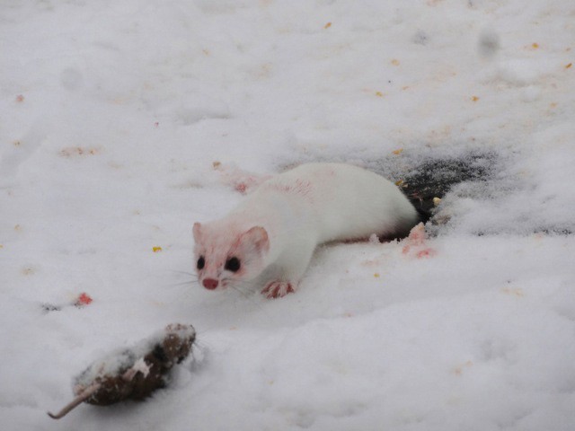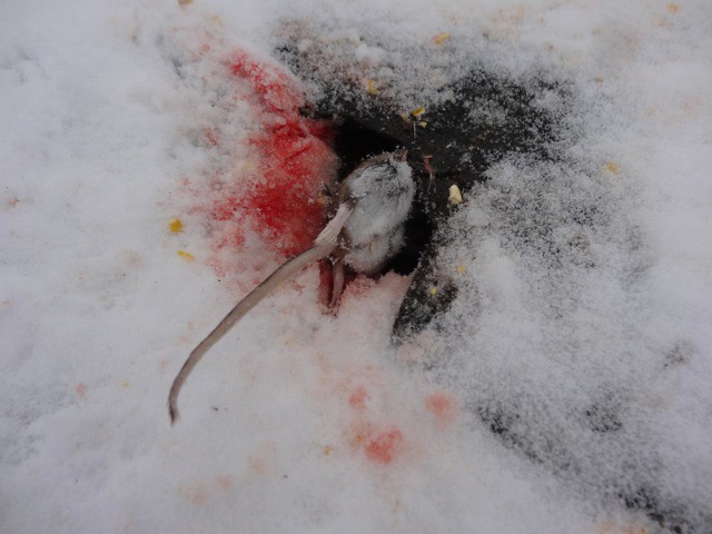 Jan. 22, 2015 - Franconia, New Hampshire - This doe has been a regular visitor to the photographer’s compost pile this winter (ruining the garden fence in the process). On this day, she made at least four separate trips into the garden to nosh on carrot peels and other kitchen scraps. Credit: Meghan McCarthy McPhaul.