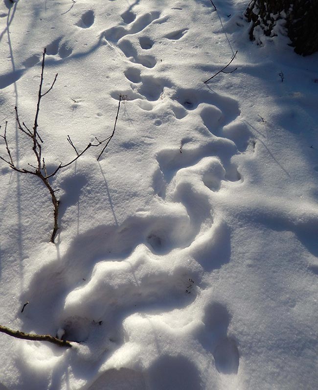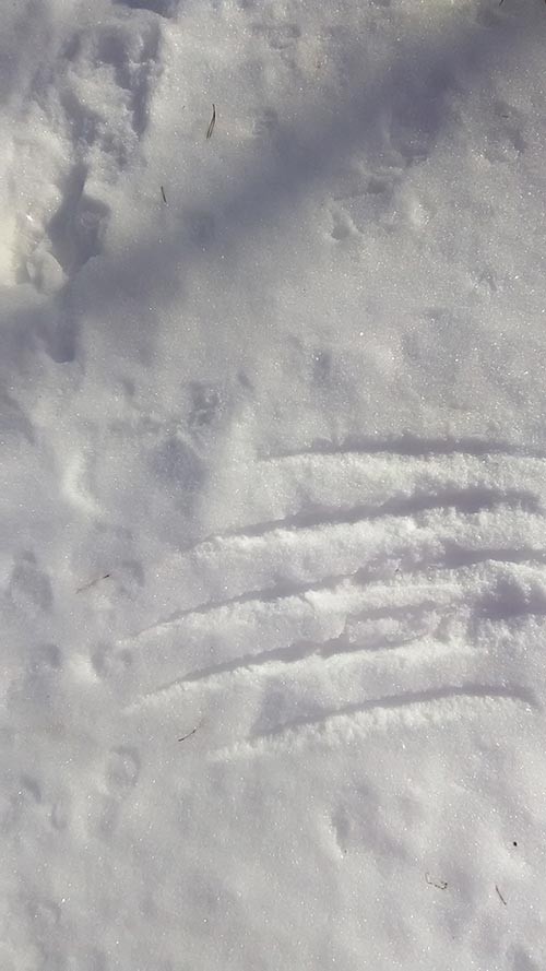Your photos this month hewed to landscape and ice scenes, reflecting the stillness and extreme cold that began the year. Flooding and freezing along the Androscoggin created an icy high water line, and there were strange marks in the snow: runes written, perhaps, by a nosy deer. Meanwhile, peregrines lurked by a bridge for unwary pigeons and a coyote made dinner plans by the compost pile.