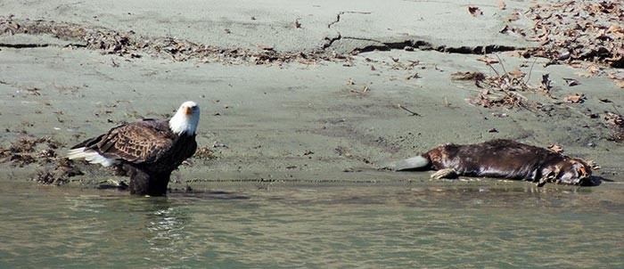 Swarming stoneflies and salamanders! Your March photos revealed early harbingers of spring. Maple sap flowed, woodcocks danced, and frost heaves popped up along the roads. What’s the spring special at the Eagle and Coyote Restaurant? Thawed beaver with a side of surveyor tape.