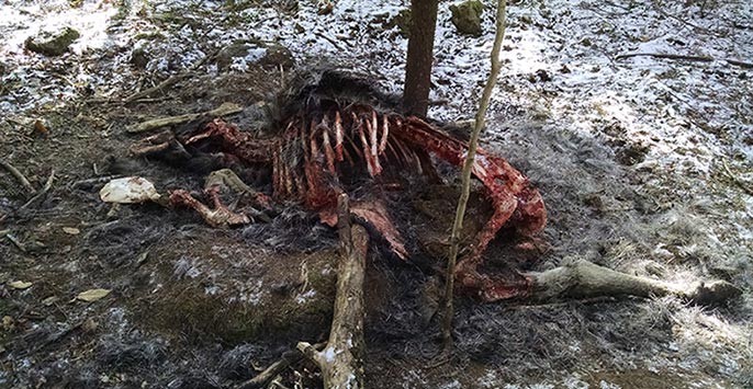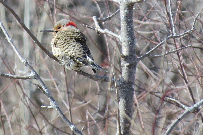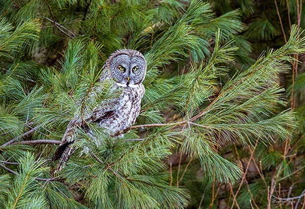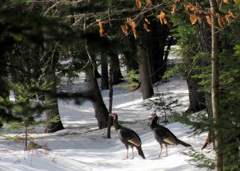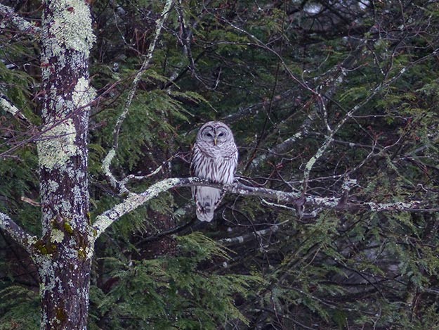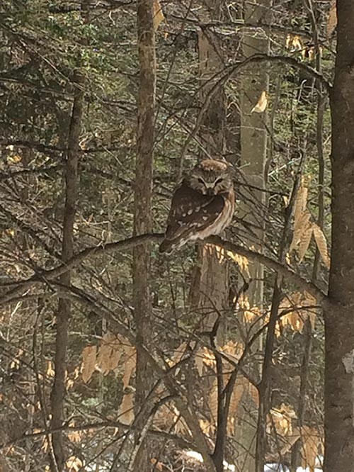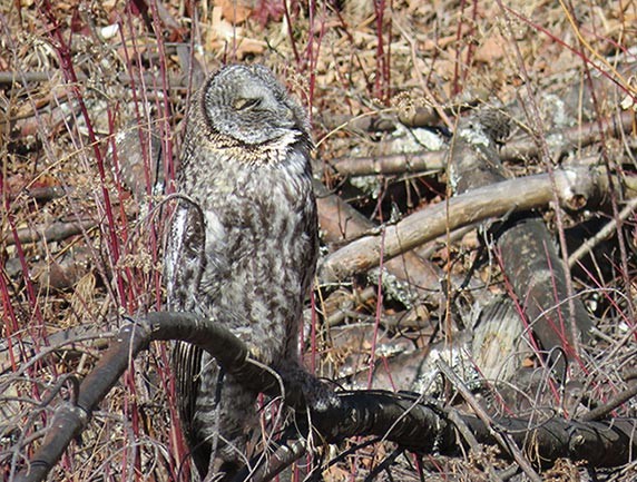 Your March photos captured images of often elusive creatures: a great grey owl, an otter popping up from under the ice, and - just in time for April 1 - the legendary North Woods kiwi bird. From Connecticut, Harcourt Davis contributed two beautiful photographs of waterfowl, and Maureen Dewire shared a great photo from New Hampshire of Bohemian waxwings feasting on crabapples. Do you see the bird silhouette in that log?