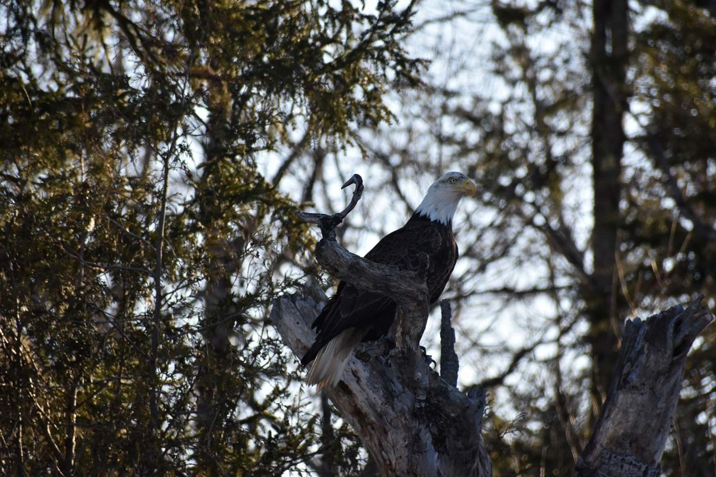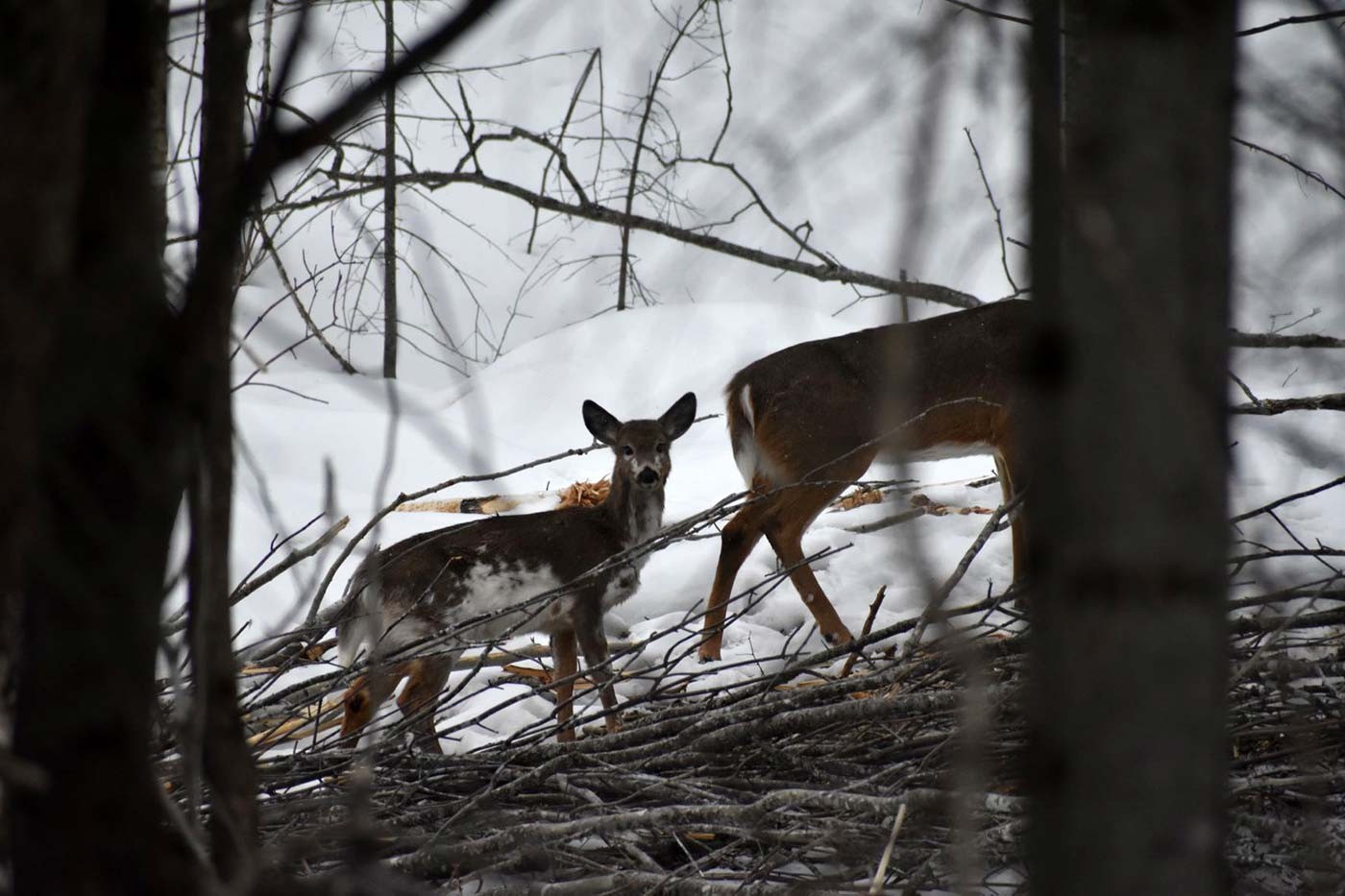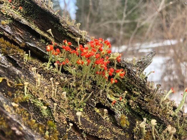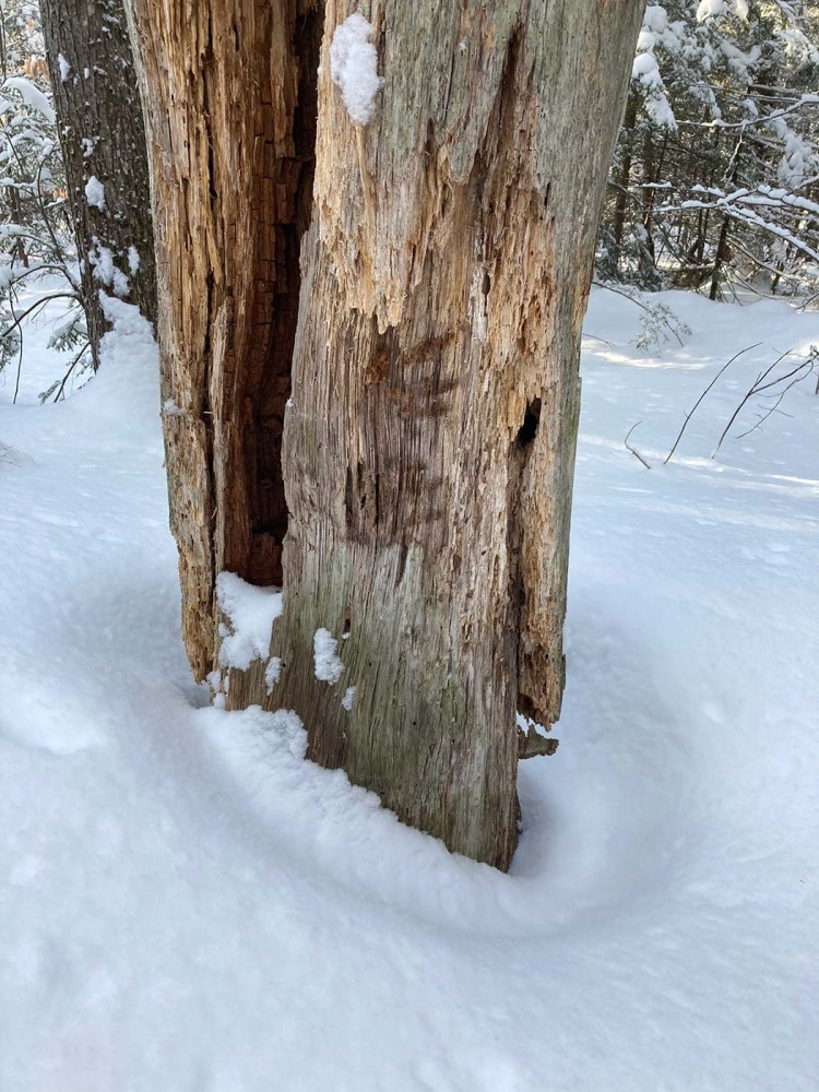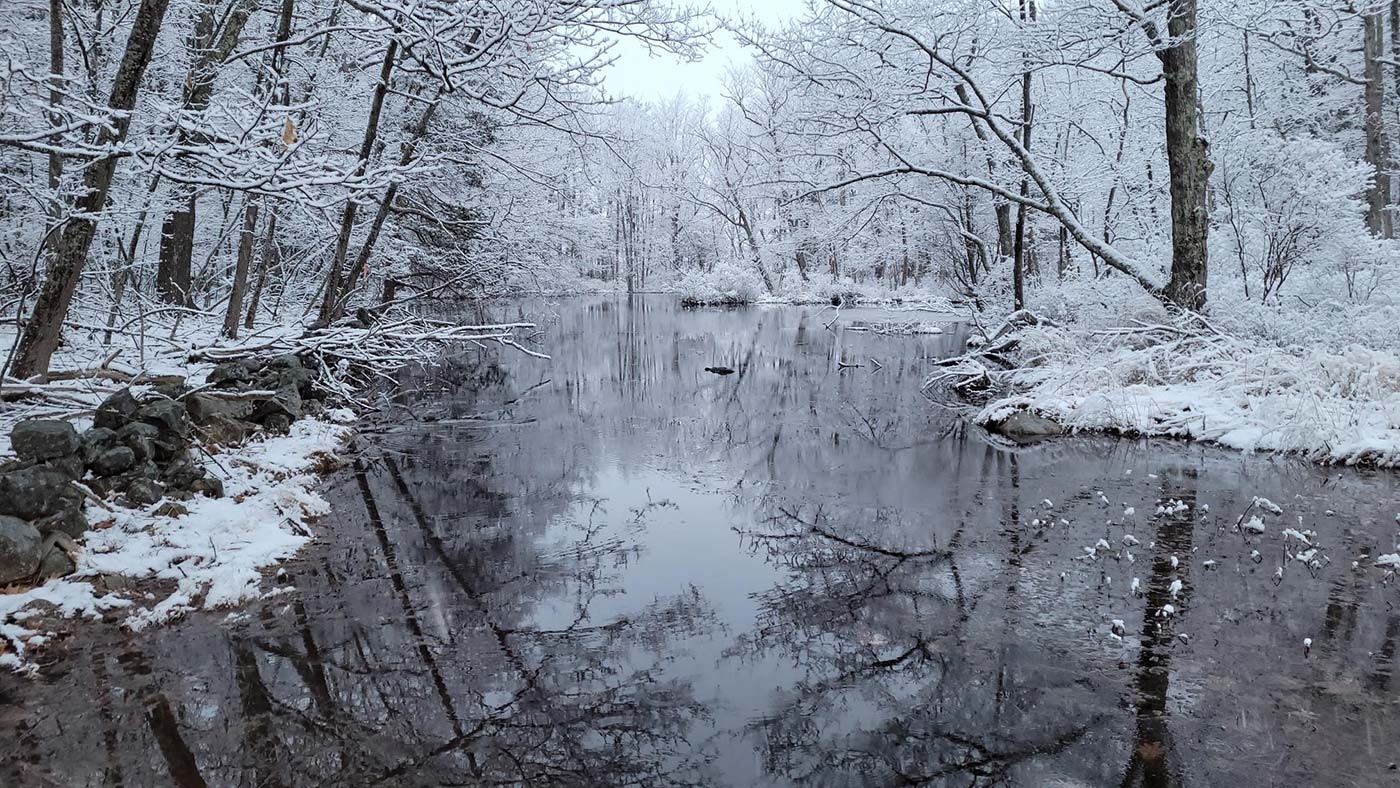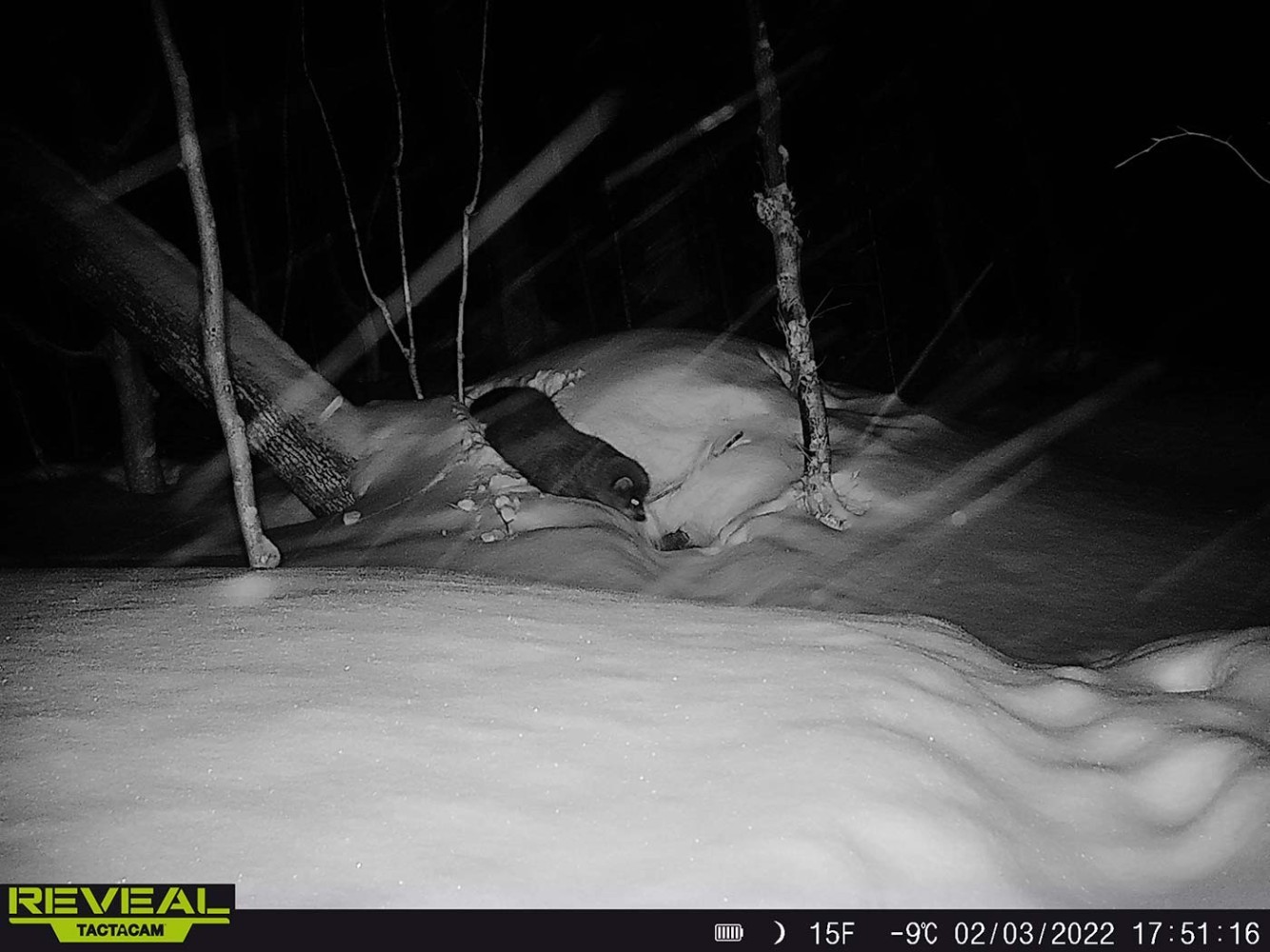 Your March photos still included many snowy scenes, but a cheering number of spring sights as well, including spotted salamanders, trailing arbutus, osprey, and a beautiful comma butterfly. Michael Thiel shared a stunning scene, and a great explanation, of a wooded salt pond in Rye, New Hampshire. In Northfield, Vermont, Susan Stillinger captured an image of a fisher in the process of investigating a porcupine den. Also in this collection: a handsome merlin, a mouse track “loopdeeloo” and a remarkable shot of a beaver tail “pre-slap.”