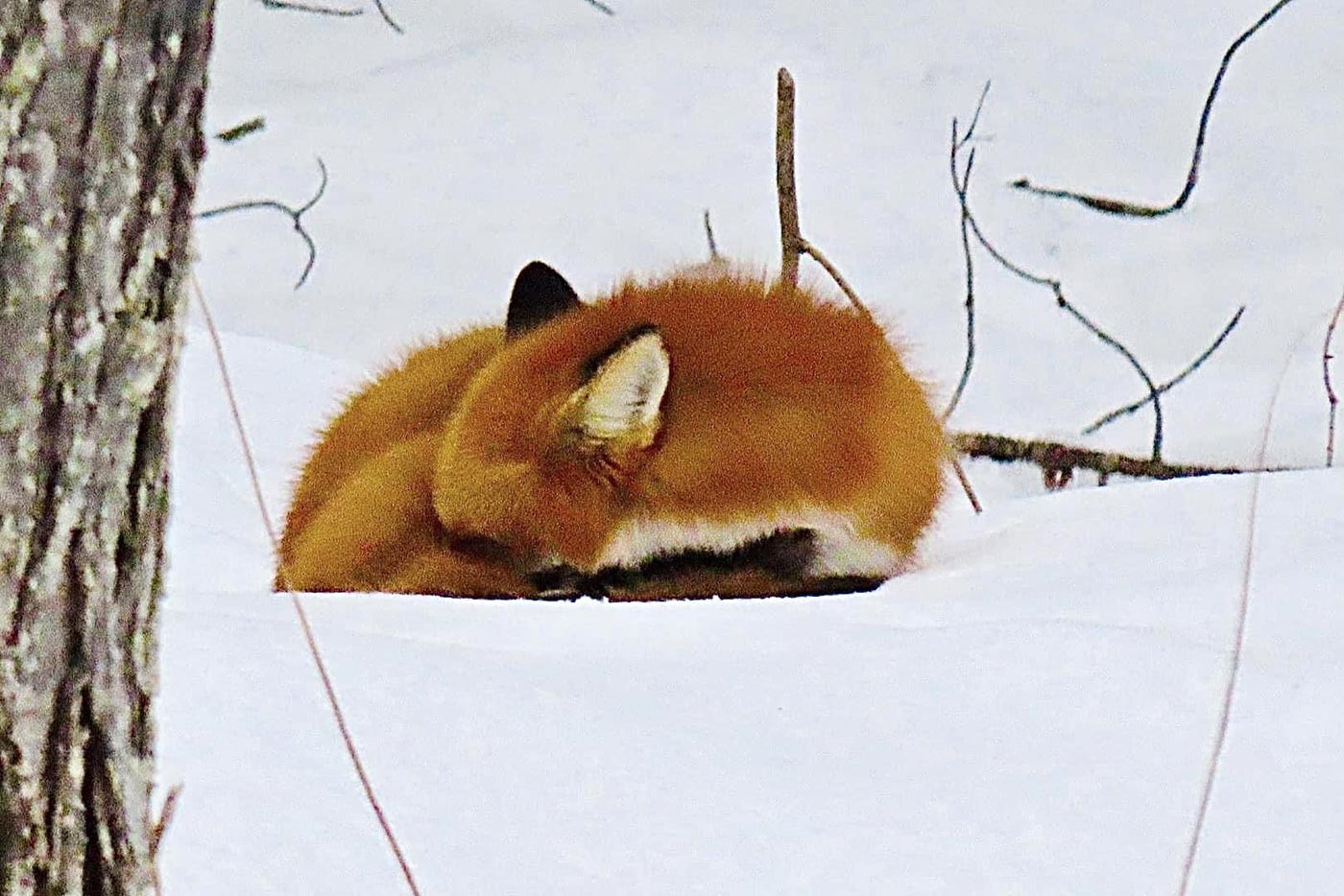 Your March photos showed the early glimmerings of spring, including returning common merganser pairs, worm-hunting American woodcock, and the first brave amphibians returning to vernal pools. This gallery includes two special images of foxes. In Wolcott, Vermont, JoAnne Pereira discovered a fox sleeping in the snow with its face tucked into the warmth of its tail. Meanwhile, in St. George, Maine, Kirk Gentalen watched in surprise as a fox entered Gentalen’s yard, and cached a hen mallard’s head. Check out Sabina Ernst’s photo of the impression left in the snow by a hunting American kestrel, and Karinne Heise’s otter family photo.