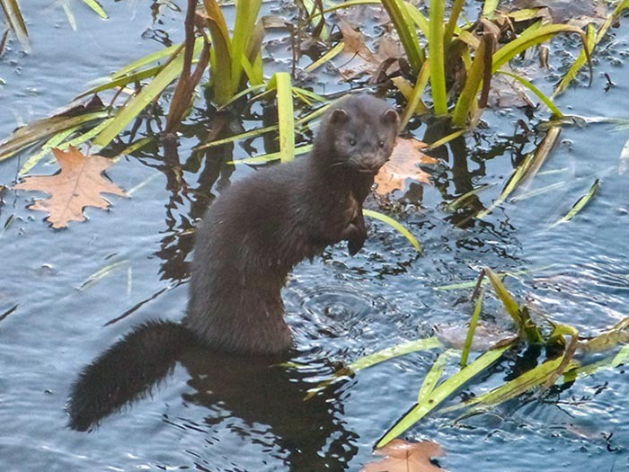 In your November photos, a pileated woodpecker dined on grapes, a mink struck a pose, and oh no!, Mr. Bill turned into a cherry tree! This November was much warmer than last year, and wildlife seemed to take advantage. Beavers continued to fell trees for their food caches, and no snow meant easy apple grazing for coyotes and other creatures. The golds and faded reds of late autumn lingered.