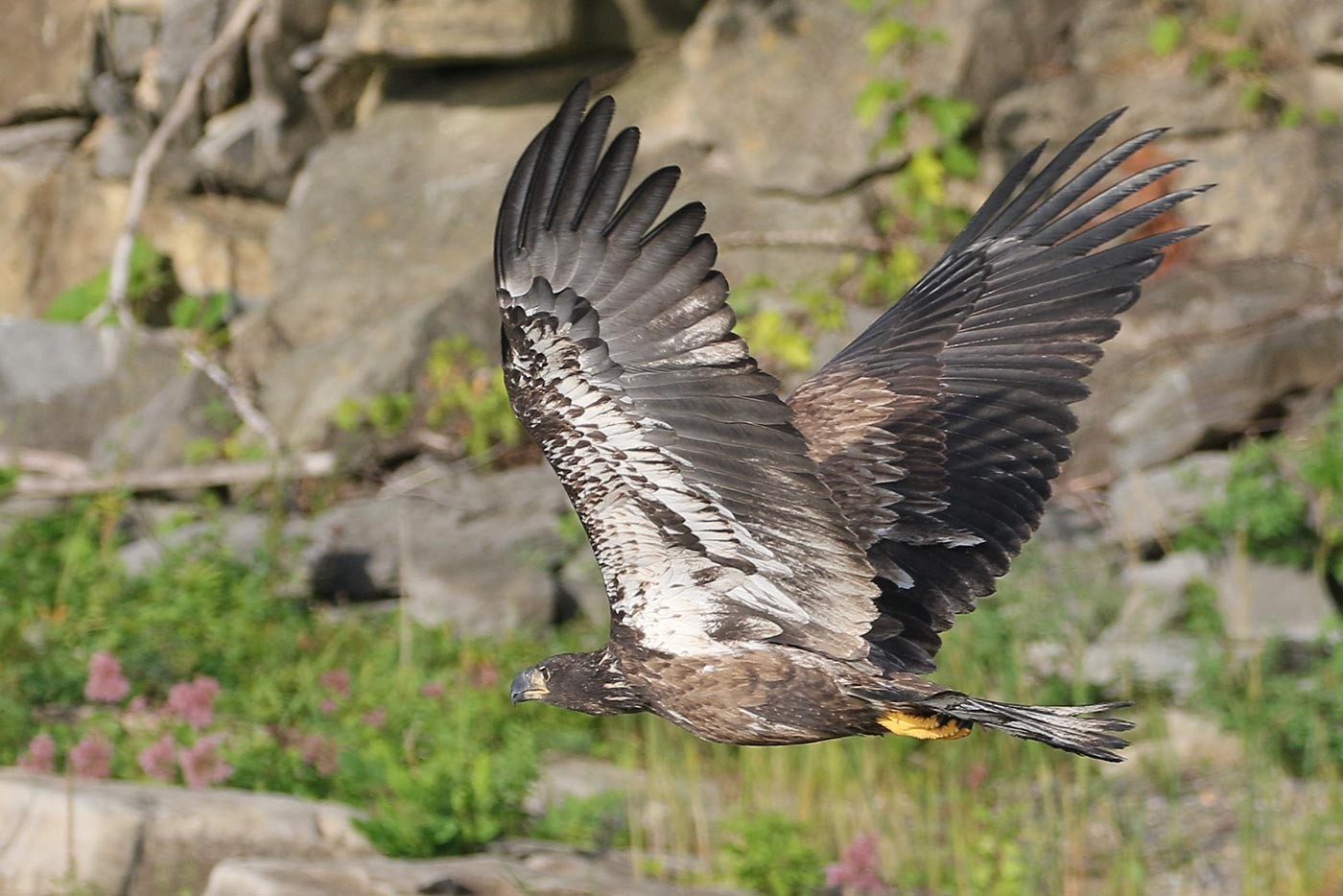 Your September photos showed late season fungi and insects, fall flowers including bottle gentians, and the onset of vibrant fall colors. In South Hero, Vermont, a great blue heron showed off its epaulets, and in Ashland, Maine, a coyote picked up some take-out. In Paul Smiths, New York, Doug Kramer captured the view of a tree’s foggy reflection on Osgood lake, while in Ashfield, Massachusetts, Judy Sweet focused in close on the bright red berries of Jack-in-the-pulpit. Check out Sandy Dannis’s image of a grass munching momma bear and her cub.