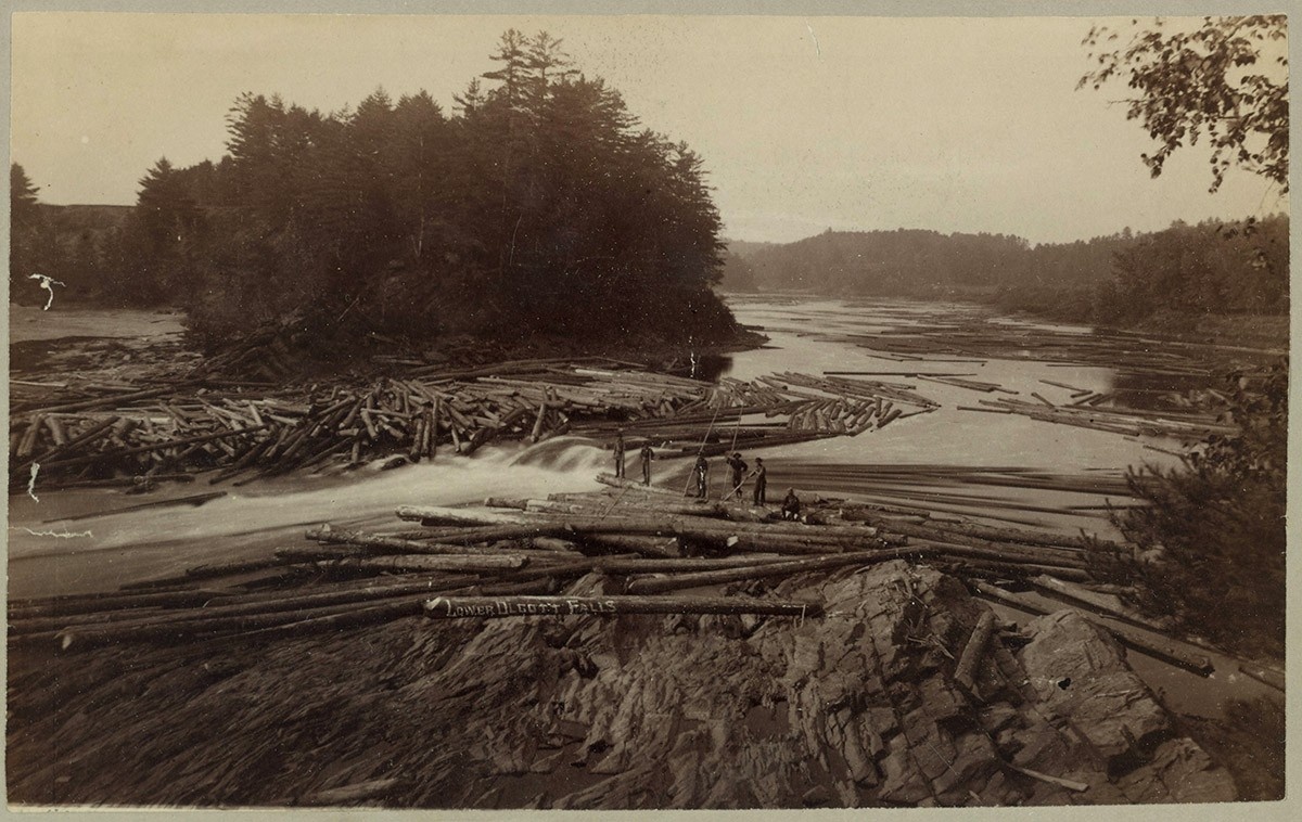 As European settlers took possession of the land, the forests for two centuries changed hands mostly in small holdings that were farmed or logged, with the logs – the best of them reserved for the King of England’s navy – floated to mills down the Connecticut. Trees, having become property, were thereafter subject to the pull of power and money.