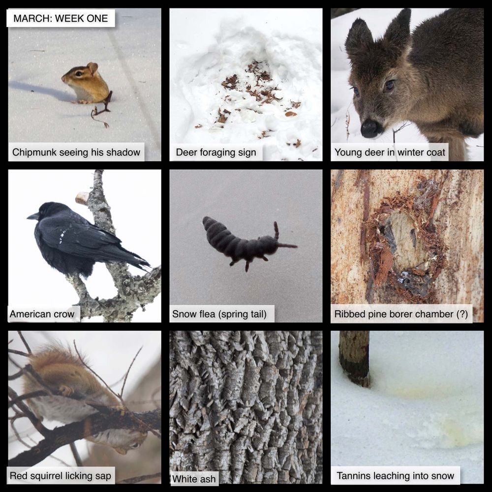 In this difficult period, many of us find joy in observing local nature, and many families are seeking outdoor enrichment opportunities for children. Here are nine photographs taken this past week, most within 15 miles of the Northern Woodlands office in Lyme, New Hampshire. We hope you enjoy using this grid as a prompt for your own explorations, or as the basis for a game of family forest tic-tac-toe.