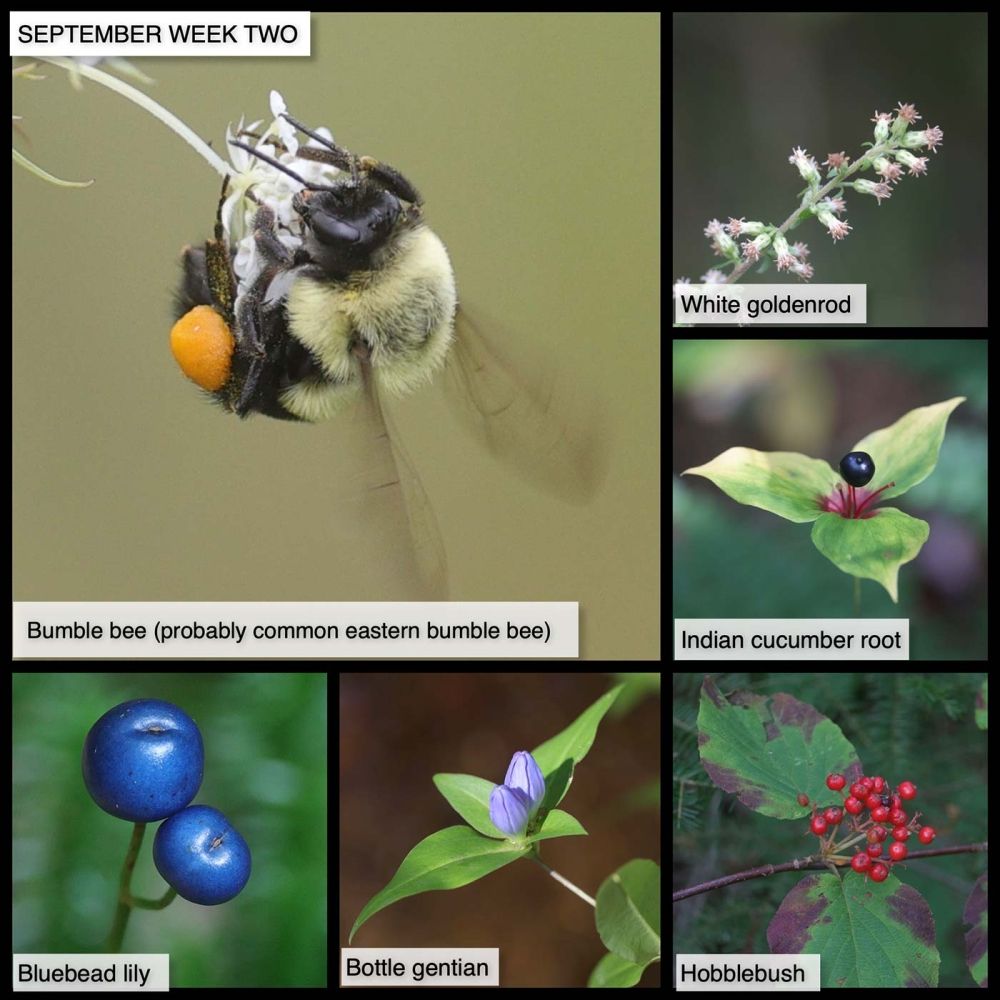 This Week in the Woods, we’ve been paying closer attention to bumblebees. Like most other pollinators, they’re winding down their year as the weather cools. Unlike honeybee hives, which can overwinter multiple years, bumblebee hives start anew each spring with a young queen’s emergence from the ground. The hive dies off in autumn as the queen stops producing new worker bees. By that time, if all goes well, a crop of young queens have successfully mated and burrowed into the ground to hibernate for the winter. To learn more about challenges to bee populations and how to help them, see this page from Vermont Fish and Wildlife, which offers links to multiple resources. For anyone wanting to take a deep dive into the subject of bumblebees (what are cuckoo bees, and how do “smelly feet” help one bee know what flowers have already been visited?), check out the book A Sting in the Tale by Dave Goulson, founder of the U.K.’s Bumblebee Conservation Trust. See also this article from the Autumn 2021 issue of Northern Woodlands magazine, describing efforts to promote native pollinator-friendly plants in Connecticut.