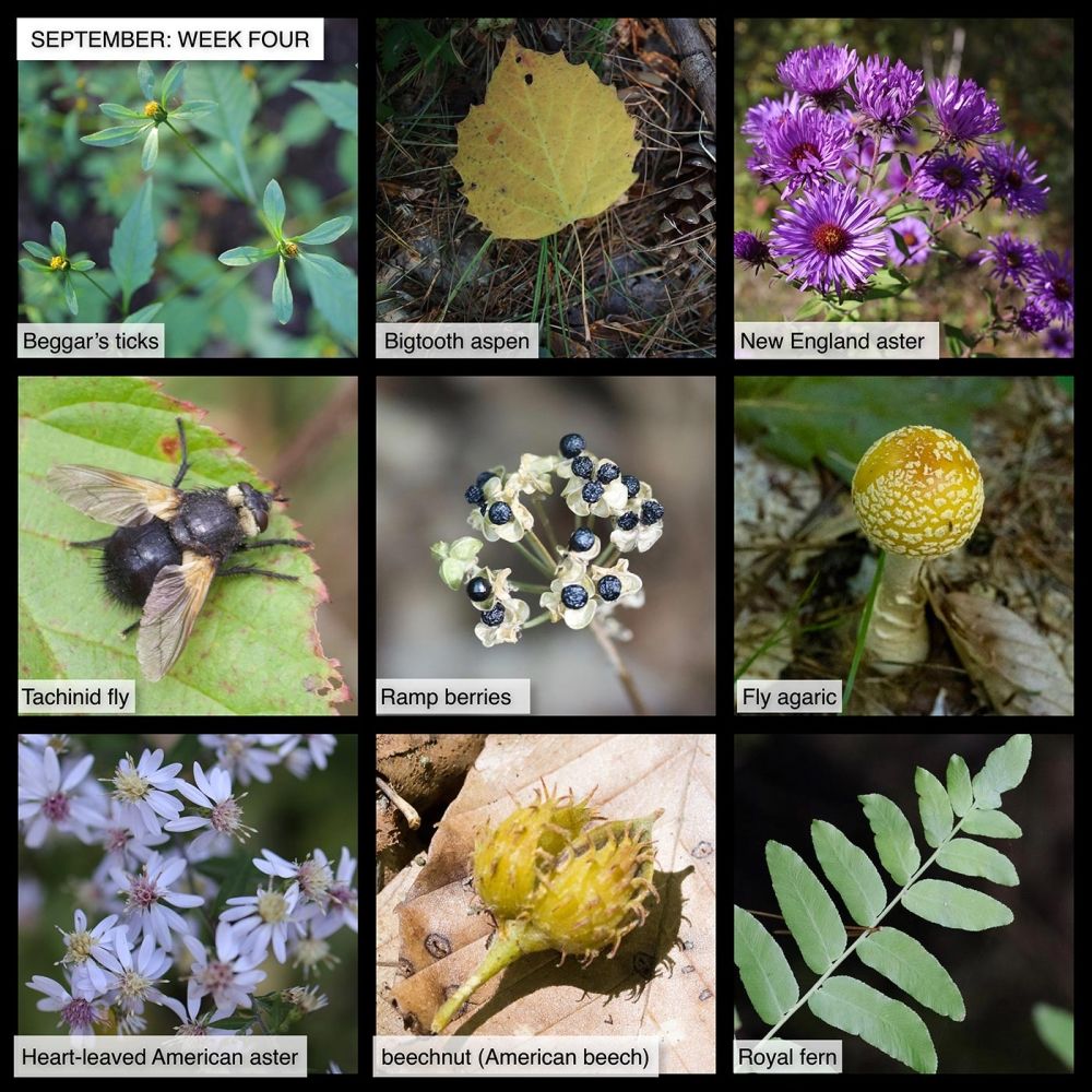Bigtooth aspen is casting yellow-and-rose tinted leaves to the forest floor. The tree is a close cousin of quaking aspen (which we featured back in May) and shares many of that species’ characteristics, such as early successional growing habits and value for a host of different wildlife species, including grouse, which feed on its buds. It’s also a valuable cavity nesting tree. Here’s a profile from The Native Plant Trust.