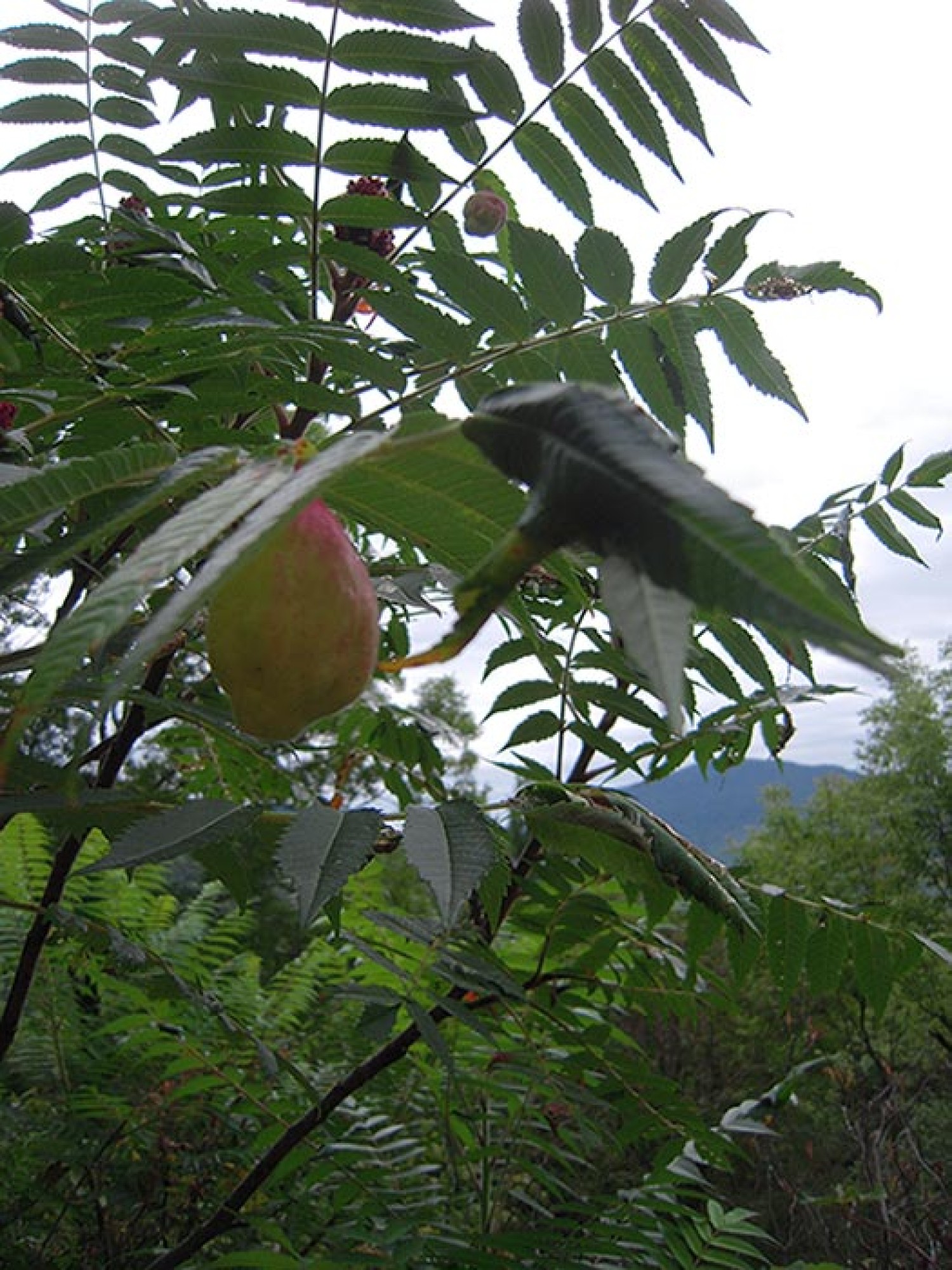 That’s a sumac gall (or sumac leaf gall) on a staghorn sumac, caused by the sumac aphid. Learn more here.