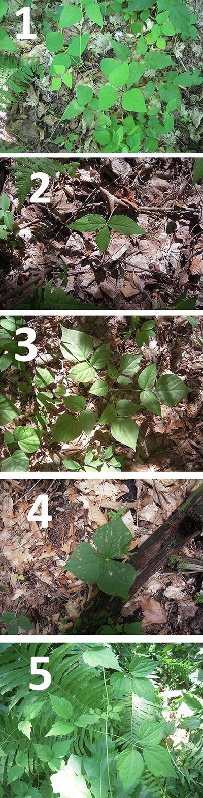 “Leaves of three, let them be” is the old saying to help keep you from touching poison ivy, but not all plants that have leaves or leaflets arranged in groups of threes have the potential to cause you discomfort. These five plants were observed in mid-summer in southern Vermont on average to richer soils. What are they? (We’re just looking for common names.)