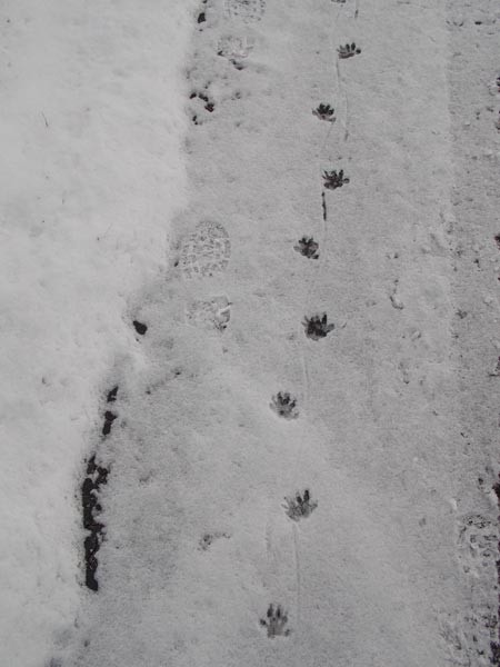 This week’s winner is David Dargie, who wrote, “That would be a size 8 women’s Timberland boot print. With the long stride, I’d say she was running away from the opossum that was chasing her.” (David’s mostly right: the boots are a size 7.)