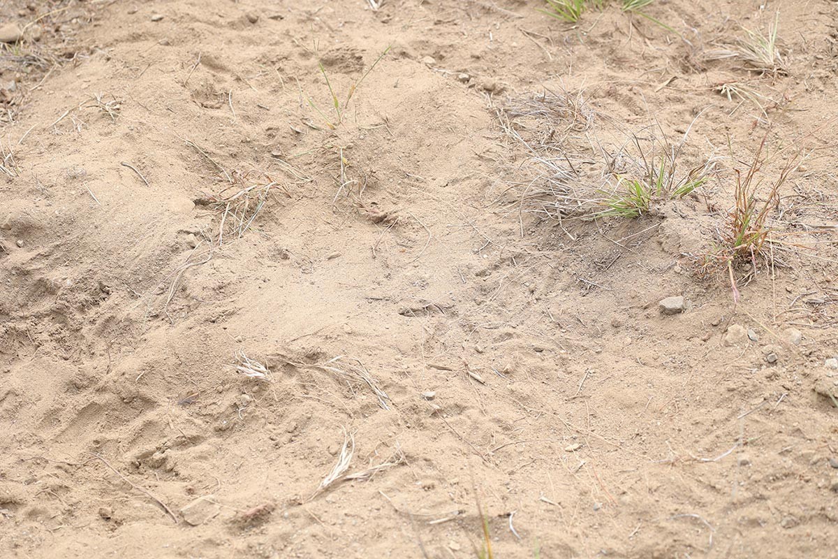 We found this exposed sandy area on a hill in central Vermont, where something had scratched up the grasses and disturbed the soil. What happened here?