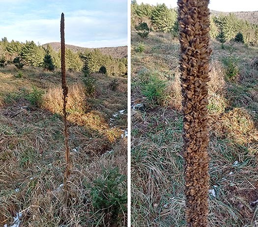 Spotted on a Christmas tree farm, it’s taller than many of the young trees and still standing straight in late November. What is this plant?