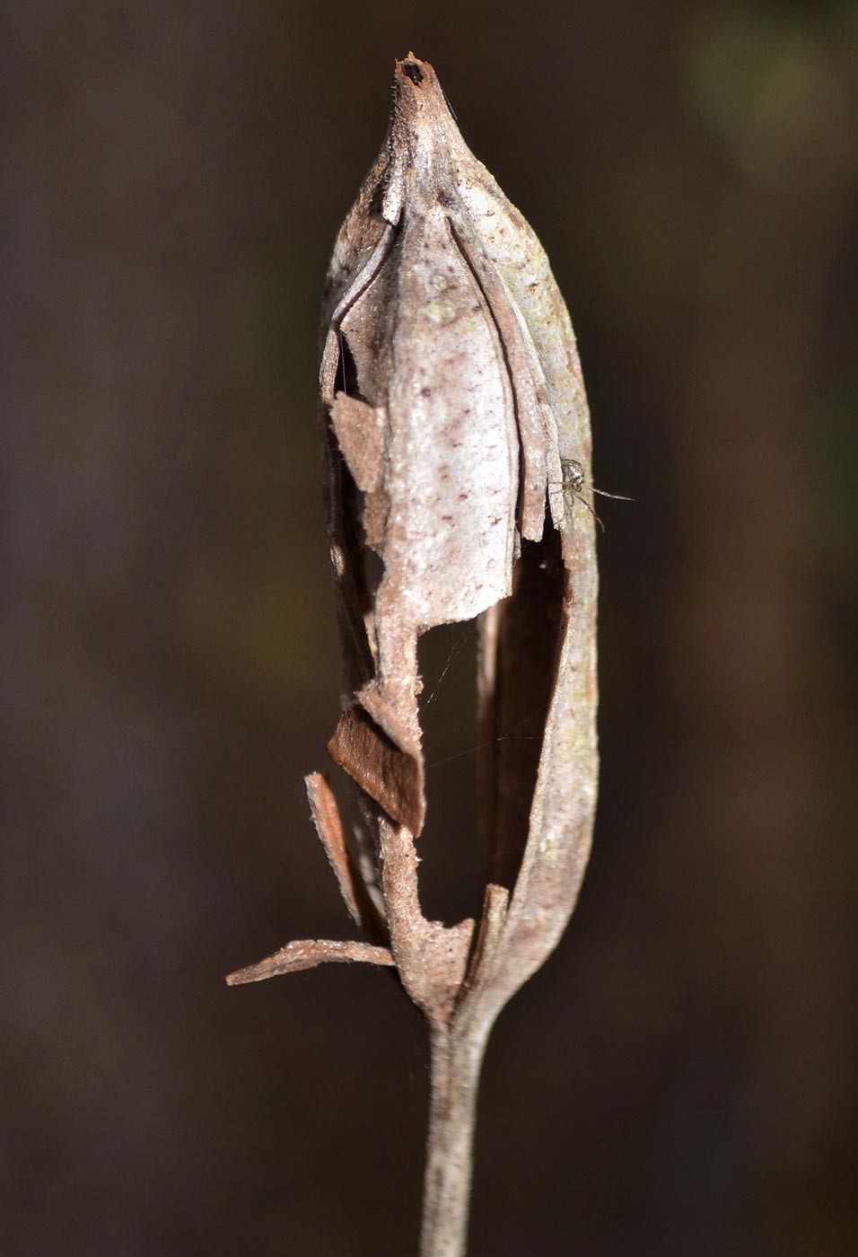 Reader Tammis Coffin snapped this photo of a curved, twisted-topped pod in western Massachusetts. What is it?