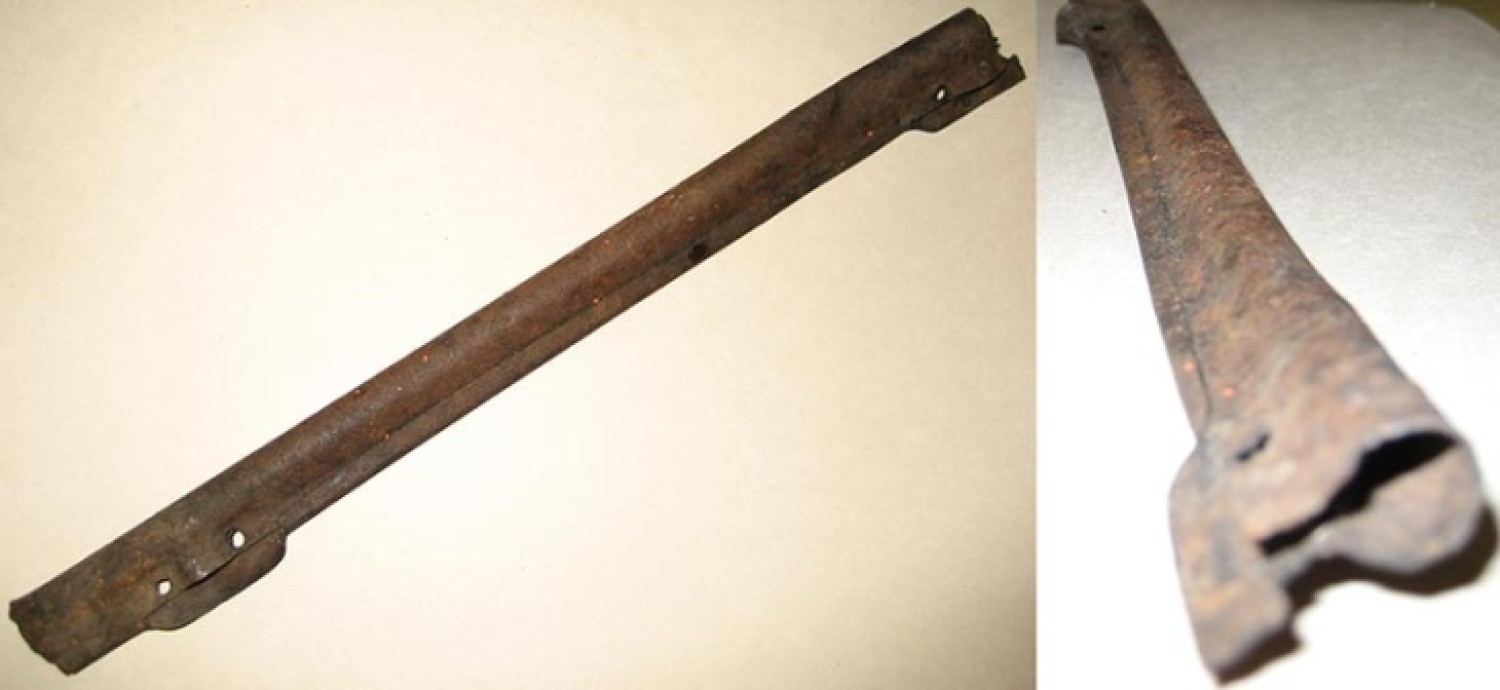 It’s metal, it’s rusty, and it’s hollow. This is a section of a longer piece found in the woods in southern Vermont. What is it?