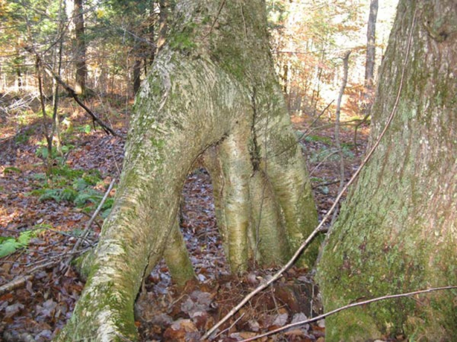 Our Facebook friend Terry Holden took this picture of a yellow birch in Cambridge, Vermont. What caused the tree to grow in this funky manner?